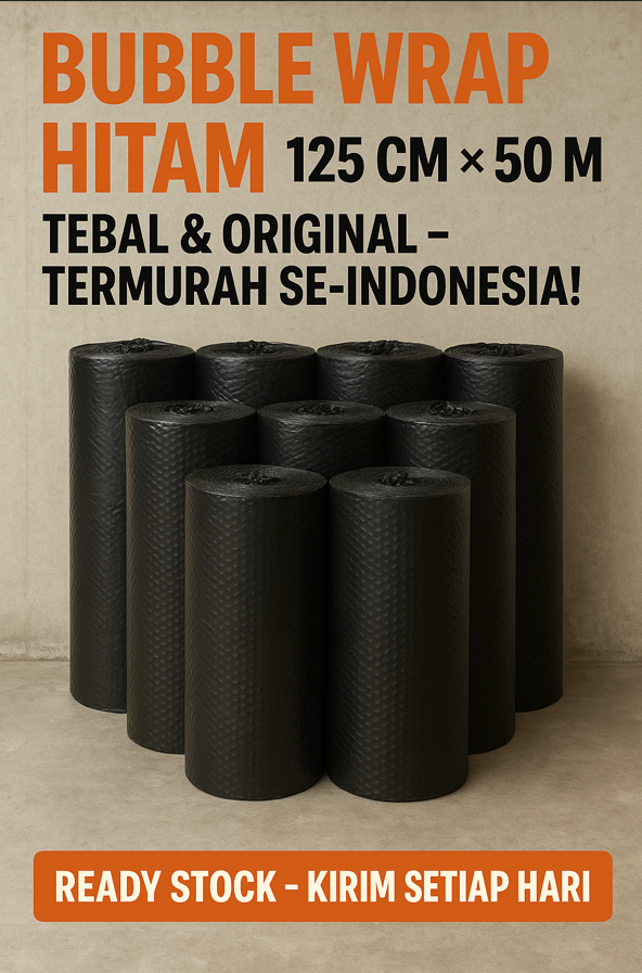 Bubble Wrap Hitam Roll Packing Tebal 3kg Ukuran 125 cm x 50 m